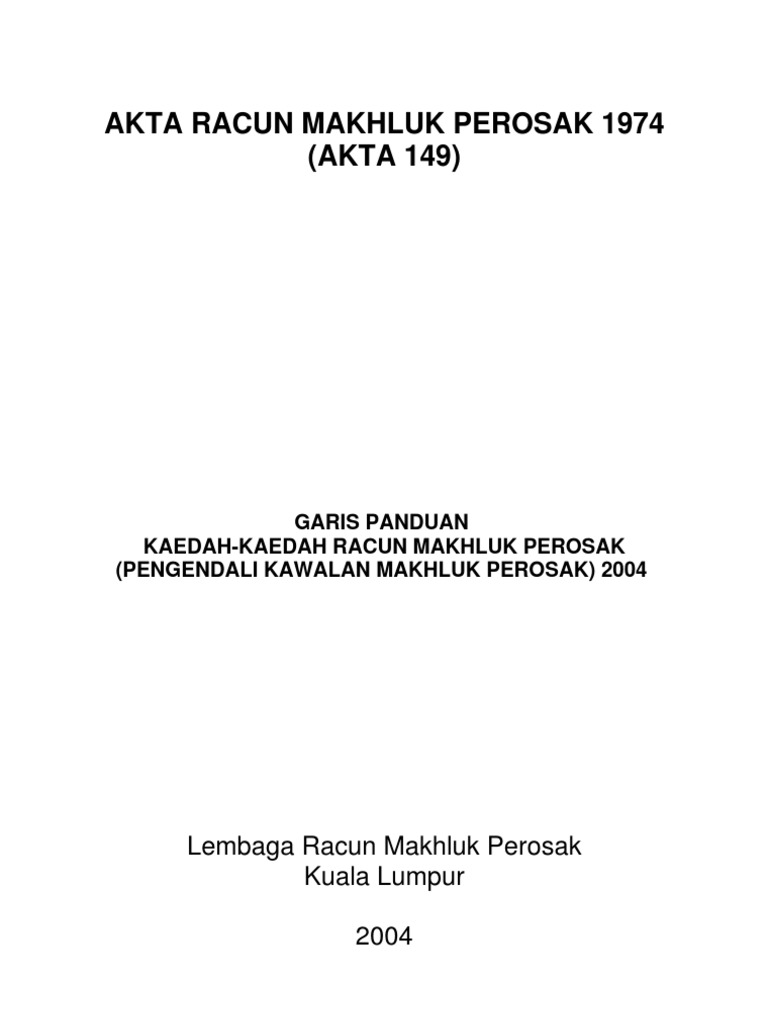 Anim Agro Technology: APAKAH AKTA RACUN MAKHLUK PEROSAK? from 3.bp.blogspot.com Akta petroleum dan elektrik (kawalan bekalan) 1974. Racun perosak adalah aplikasi kimia yang biasa digunakan dalam pertanian. Sebanyak 35 tan racun tidak berdaftar bernilai hampir setengah juta dirampas dalam serbuan di sebuah premis penyimpanan mohd nasir berkata, kes disiasat mengikut seksyen 13(1)(b) akta racun makhluk perosak 1974 iaitu mengilang racun makhluk perosak tidak berdaftar. *akta racun makhluk perosak 1974 #pengendali kawalan makhluk perosak. Text akta 149 akta racun makhluk perosak 1974.pdf restricted to repository staff only download (90kb). Kerimo telah disahkan tidak disenaraikan dalam jadual 1 akta racun makhluk perosak 1974 oleh bahagian kawalan racun perosak, jabatan pertanian pada 5 hb april 2016 dengan nombor rujukan jp krp 207/12/705. Akta cukai spekulasi tanah 1974. Sw 426 produk yang tidak mengikut spesifikasi daripada pengeluaran, formulasi, perdagangan atau penggunaan racun makhluk perosak, racun herba atau biosid.
